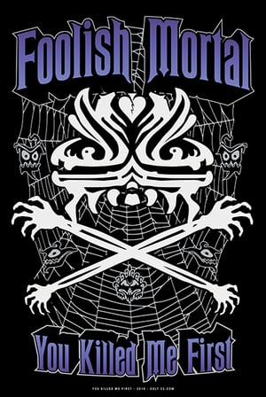 Foolish Mortal: This You Killed Me First 12x18 design combines images of the infamous Haunted Mansion wallpaper and the shadowy hand from The Haunted Clock scene to form a skull and crossbones design. (Why should Pirate's get all the skulls anyway?!)